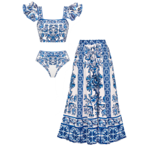 The ‘Seville Tiles’ pattern draws from Andalusia’s ceramic heritage, reinterpreting historic motifs in a warm palette for modern resort wear that embodies timeless, understated luxury.