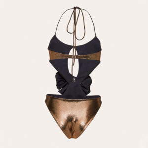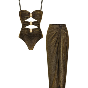 Gold Glitter Cutout Fabric One Piece Swimsuit and Skirt