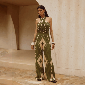 Halter Neck Geometric Pattern Print One Piece Swimsuit and Pants