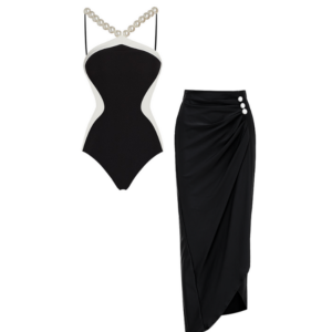 Halter Artificial Pearl Chain One Piece Swimsuit and Skirt Flaxmaker