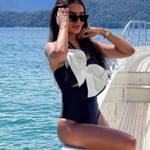 Halter Bow Color Block One Piece Swimsuit and Skirt Flaxmaker