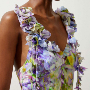 Halter 3D Flower V Neck Maxi Dress