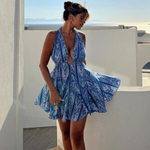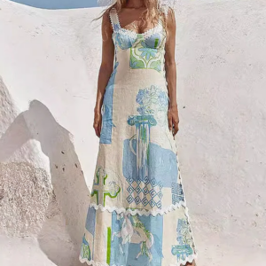 Floral Printed Wave Bandeau Fashion Maxi Dress