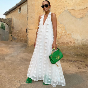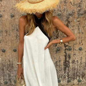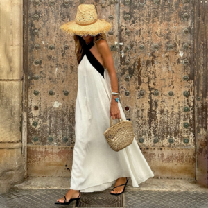Detachable Sleeves Three-way Color Block Striped Maxi Dress