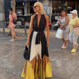 V Neck Color Block Maxi Dress
