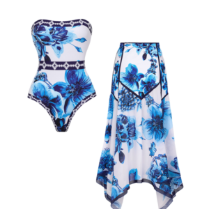 Floral Series Pattern Print One Piece Swimsuit and Skirt