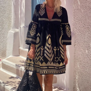 Vacation Printed Bell Sleeve Mini Dress