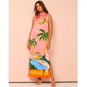 Vacation Graffiti Printed Sling Dress