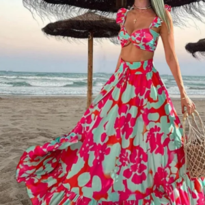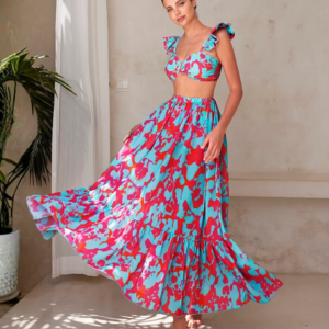 Mini Ruffled Printed Bikini Swimsuit and Skirt