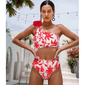 One Shoulder 3DFlower One Piece Swimsuit and Skirt Flaxmaker