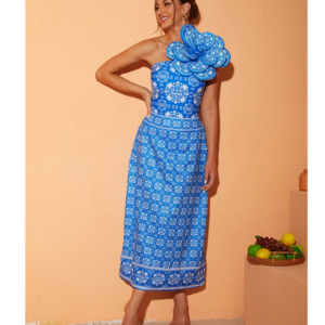 Off Shoulder Majolica Print One Piece Swimsuit and Sarong or Pants
