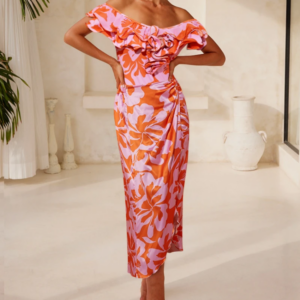 Off Shoulder Ruffled Printed One Piece Swimsuit and Skirt Flaxmaker