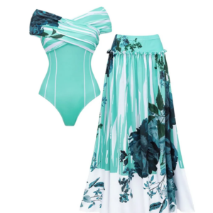 Off Shoulder Print One Piece Swimsuit and Skirt