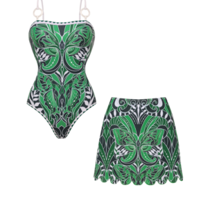 Butterfly Printed One Piece Swimsuit and Skirt Flaxmaker