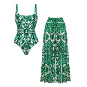 Classic Majolica Series Pattern Print One Piece Swimsuit and Pants or Skirt