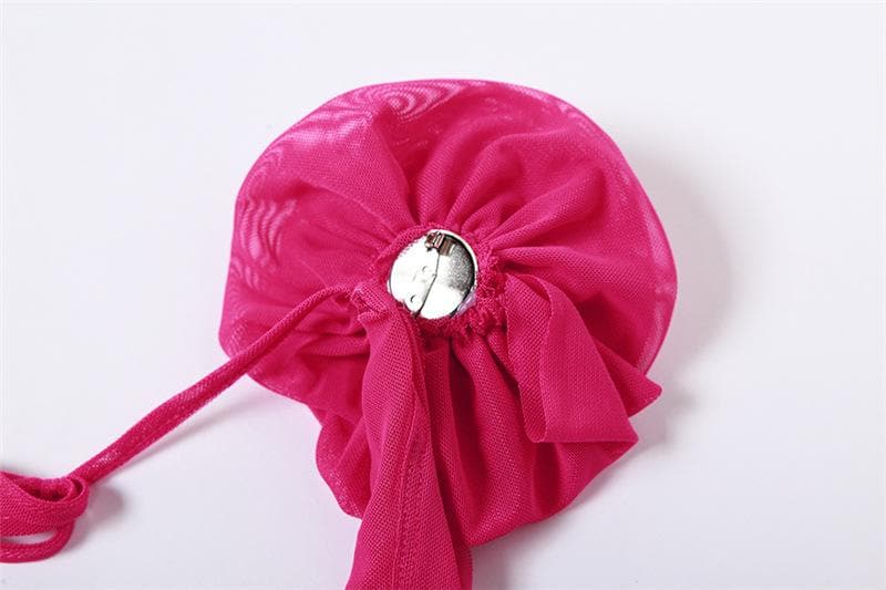 See through halter sheer mesh ruffle flower applique mini dress