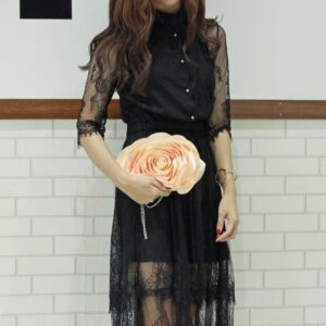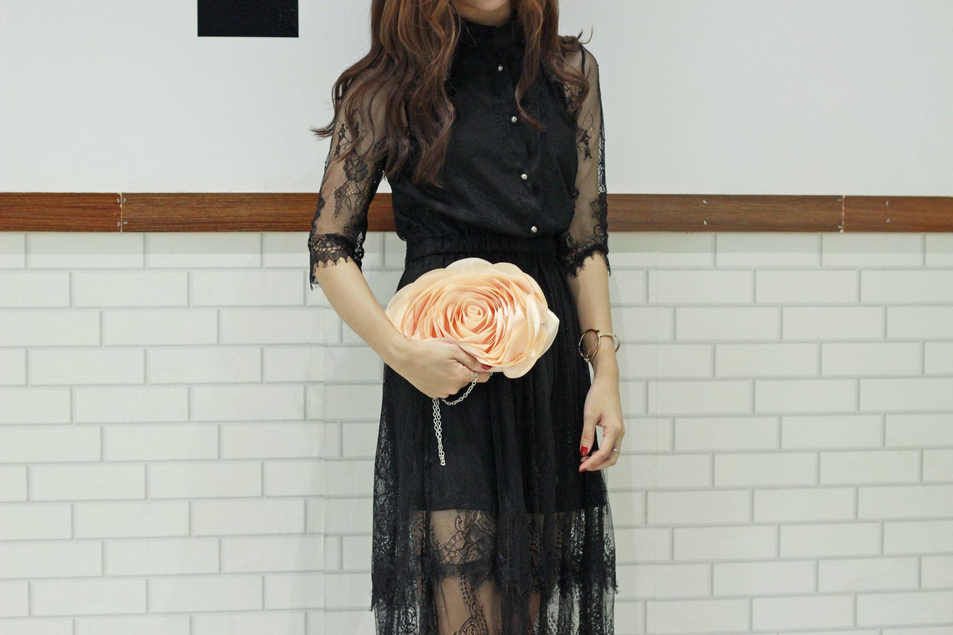 This black one piece is stunning! The 3D flowers add such a luxurious touch. I wore it at...