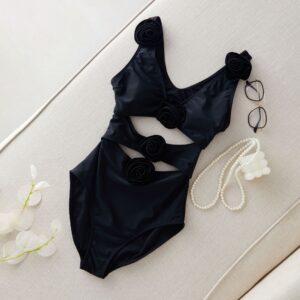 This black one piece is stunning! The 3D flowers add such a luxurious touch. I wore it at...