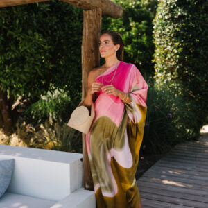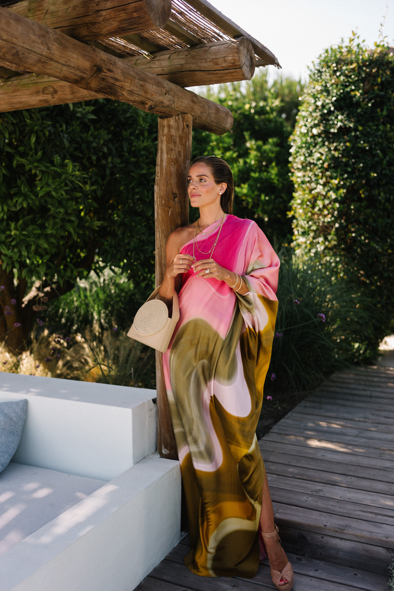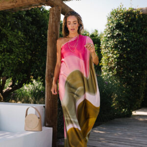 Oblique Shoulder Ombre Print Dress
