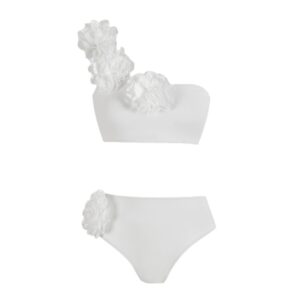 Luxury hotel pool vibes! This swimsuit is absolutely stunning. The 3D flower decor is so intricate and beautiful....