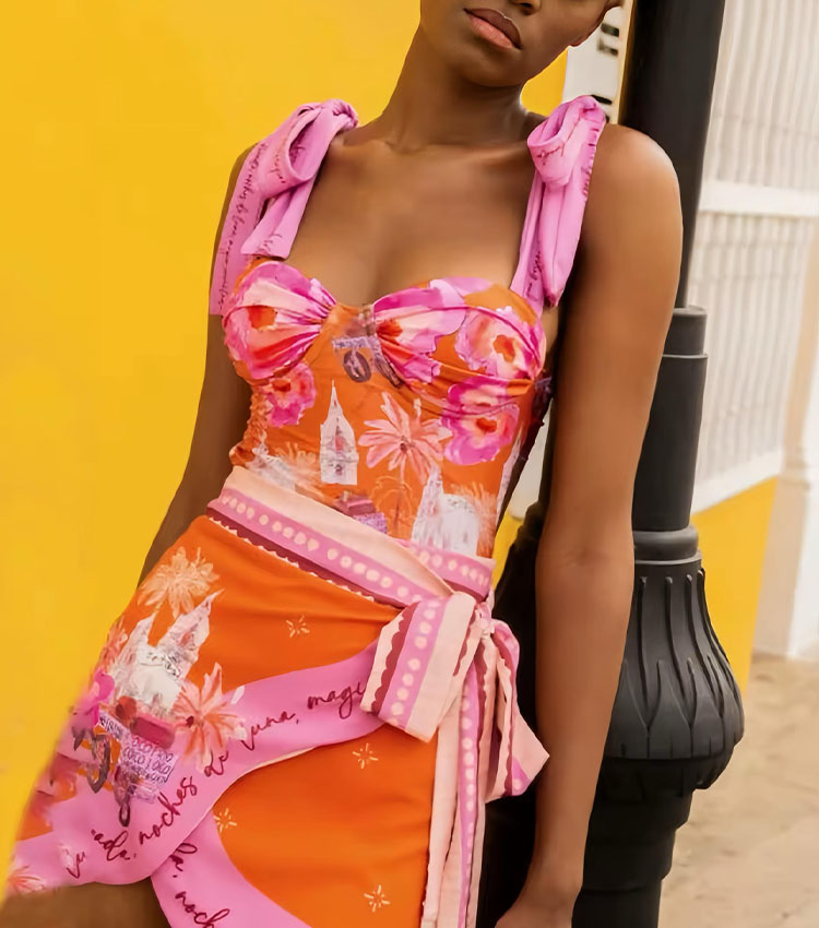 Perfect sunset beach look! This swimsuit is gorgeous. The cutout design with skirt is so elegant and the...