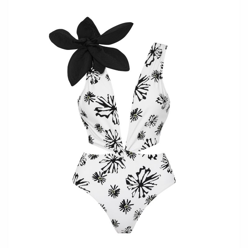 Luxury hotel pool vibes! This swimsuit is absolutely stunning. The 3D flower decor is so intricate and beautiful....
