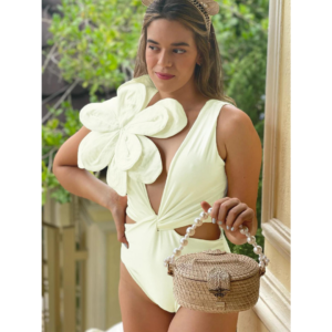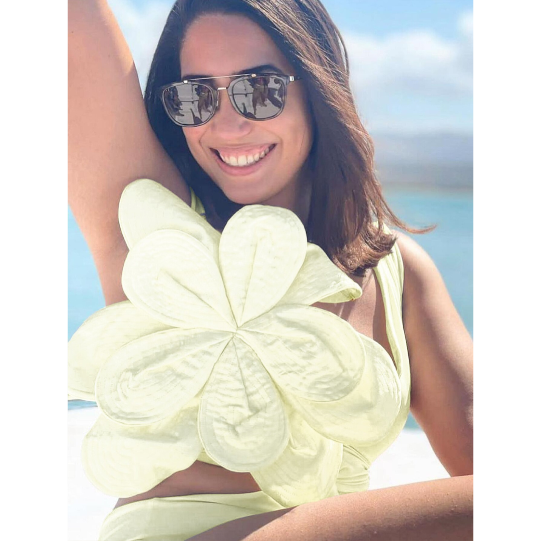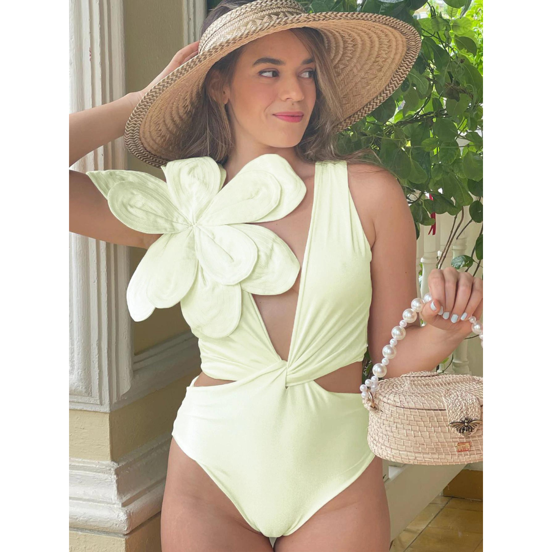 Luxury hotel pool vibes! This swimsuit is absolutely stunning. The 3D flower decor is so intricate and beautiful....