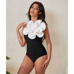This black one piece is stunning! The 3D flowers add such a luxurious touch. I wore it at...