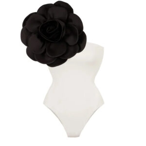 This black one piece is stunning! The 3D flowers add such a luxurious touch. I wore it at...