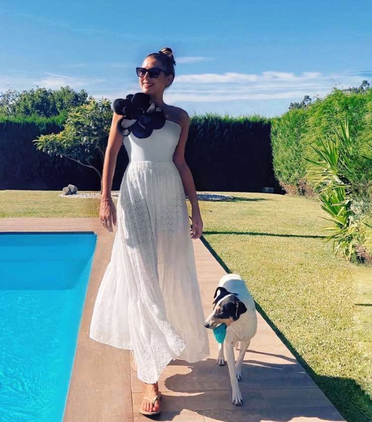 Luxury hotel pool vibes! This swimsuit is absolutely stunning. The 3D flower decor is so intricate and beautiful....
