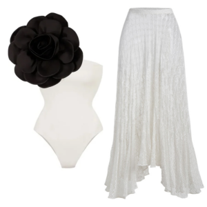 Gorgeous swimsuit! The black one piece with skirt is so elegant. I felt like a fashion model at...