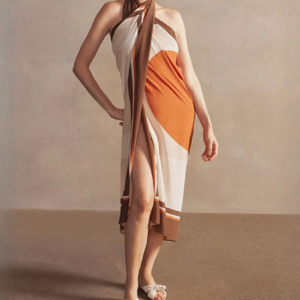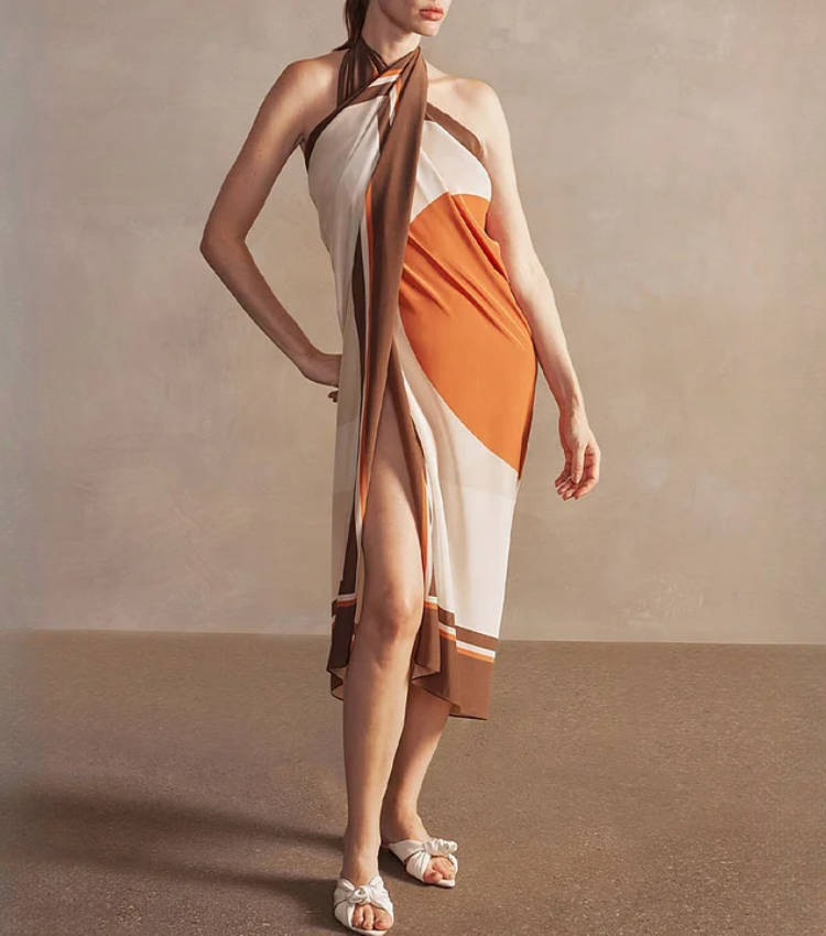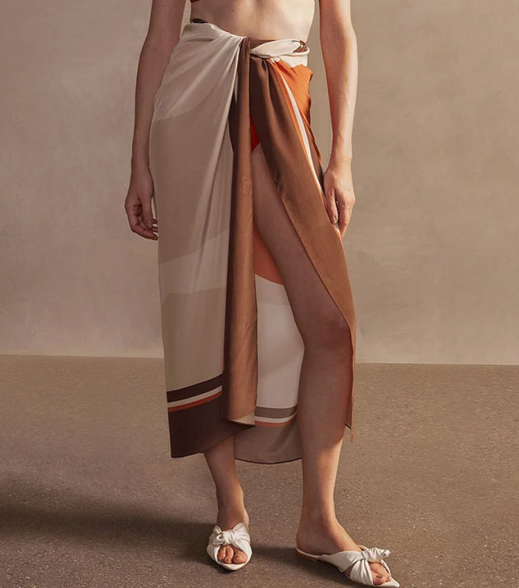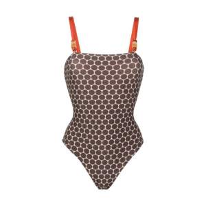 Reversible Graphic Printed Beaded One Piece Swimsuit and Sarong Flaxmaker