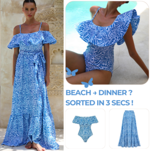Perfect sunset beach look! This swimsuit is gorgeous. The cutout design with skirt is so elegant and the...