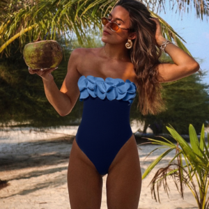 Luxury hotel pool vibes! This swimsuit is absolutely stunning. The 3D flower decor is so intricate and beautiful....