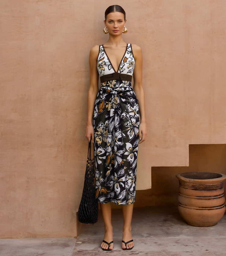 Perfect sunset beach look! This swimsuit is gorgeous. The cutout design with skirt is so elegant and the...