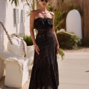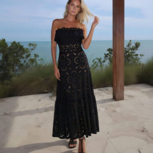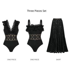 Ruffle Black Laser Cutting Flower Hollow Swimsuit Set(s)