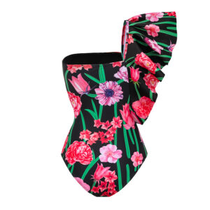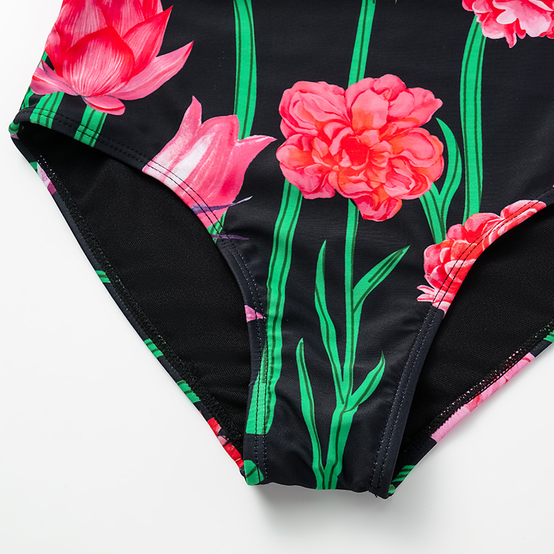 This black one piece is stunning! The 3D flowers add such a luxurious touch. I wore it at...