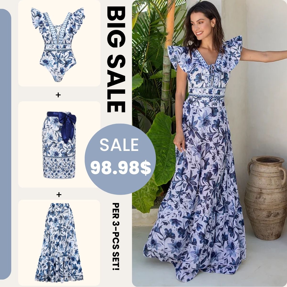 Perfect beach look! The flower bikini is so cute and the high waist design is very flattering. Wore...
