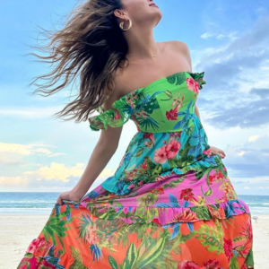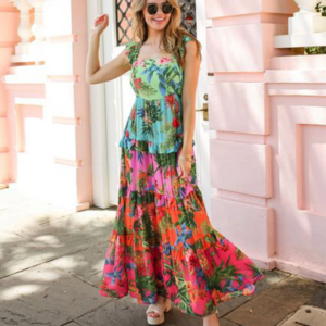 Perfect beach look! The flower bikini is so cute and the high waist design is very flattering. Wore...