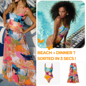 Round Neck Shell Print One Piece Swimsuit and Sarong or Skirt