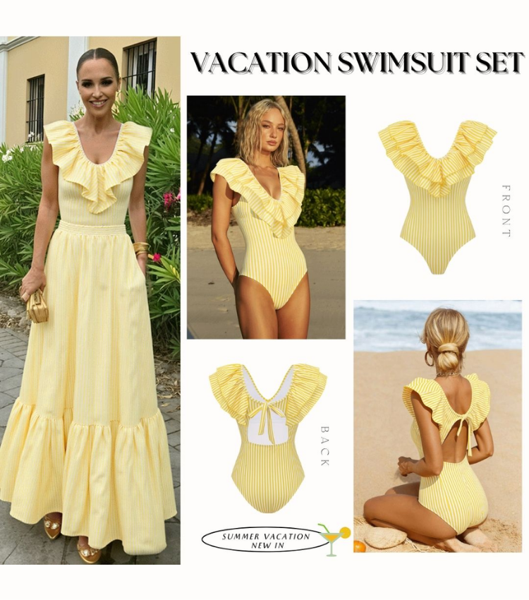 Perfect sunset beach look! This swimsuit is gorgeous. The cutout design with skirt is so elegant and the...