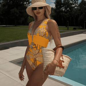 Luxury hotel pool vibes! This swimsuit is absolutely stunning. The 3D flower decor is so intricate and beautiful....