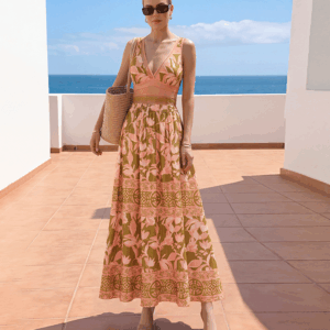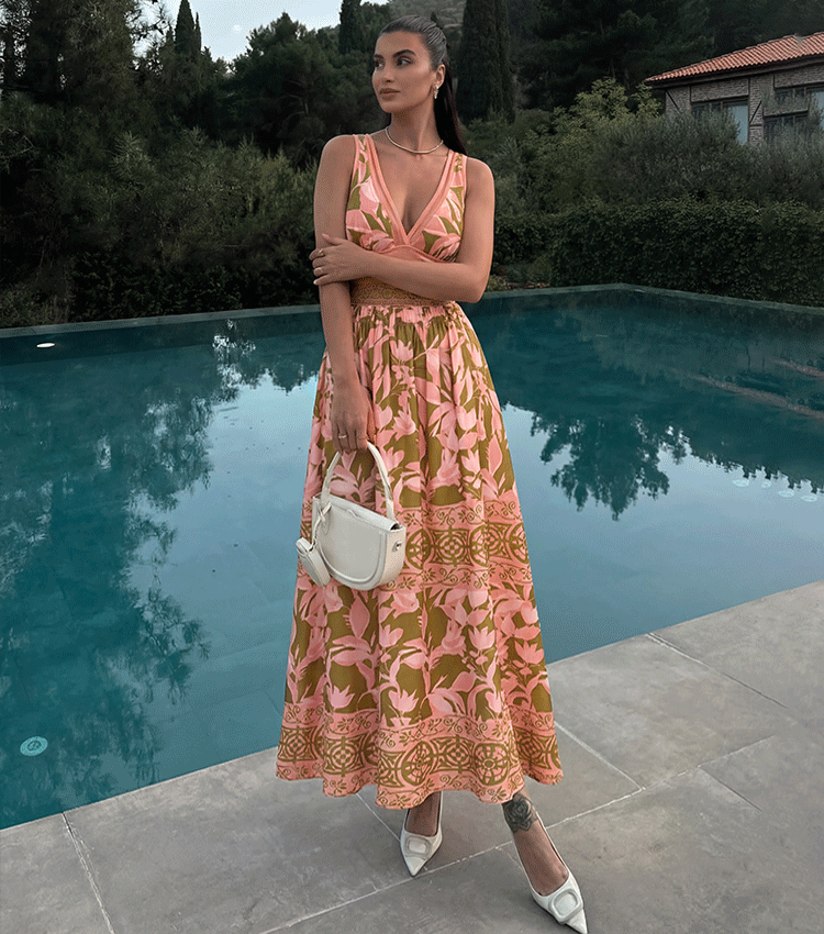 Perfect sunset beach look! This swimsuit is gorgeous. The cutout design with skirt is so elegant and the...