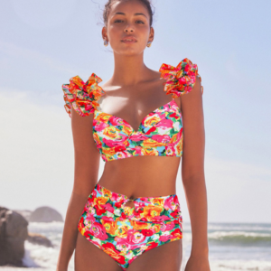 Perfect beach look! The flower bikini is so cute and the high waist design is very flattering. Wore...