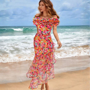 This black one piece is stunning! The 3D flowers add such a luxurious touch. I wore it at...