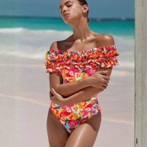 Perfect beach look! The flower bikini is so cute and the high waist design is very flattering. Wore...