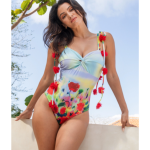 Luxury hotel pool vibes! This swimsuit is absolutely stunning. The 3D flower decor is so intricate and beautiful....