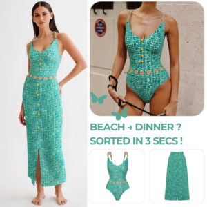 Perfect sunset beach look! This swimsuit is gorgeous. The cutout design with skirt is so elegant and the...