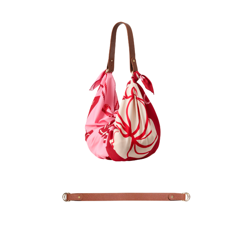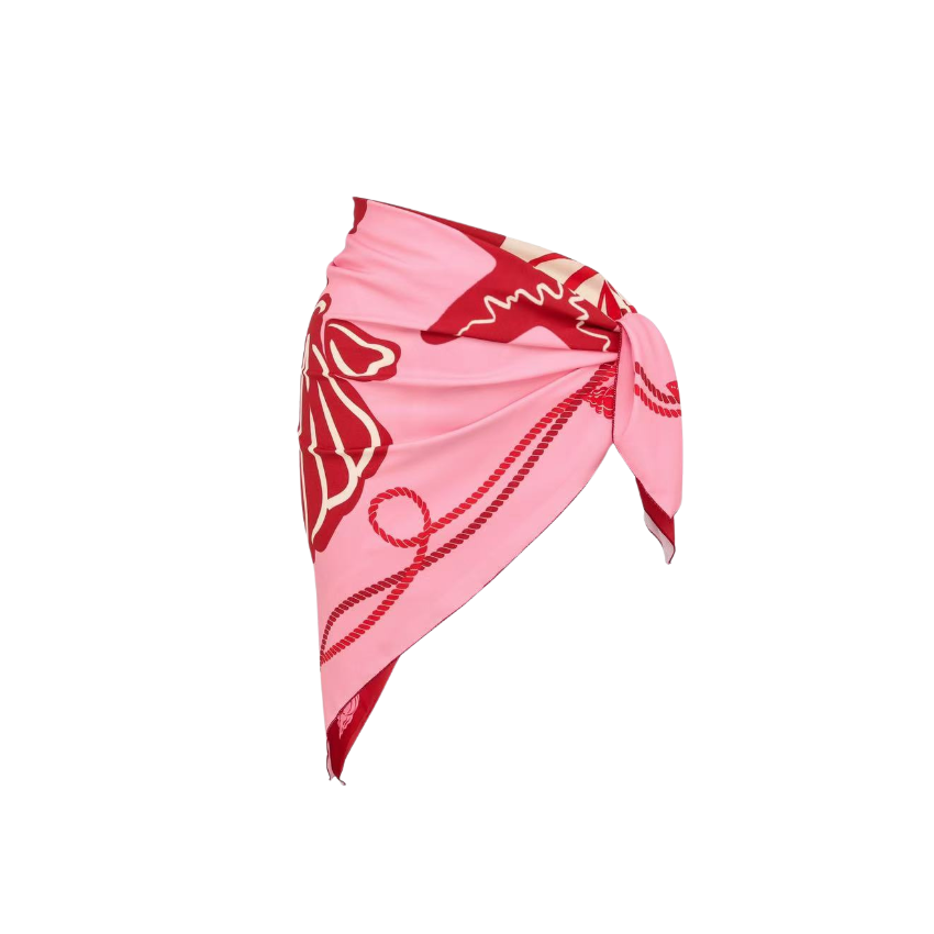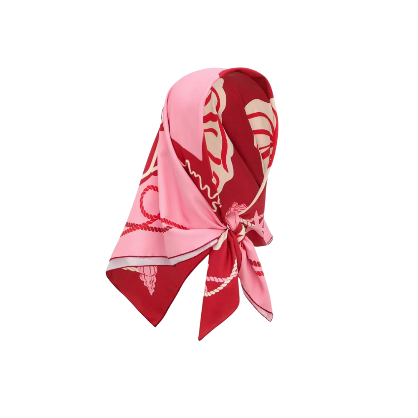 Pink Contrasting Color With Seashell Print Square Scarf