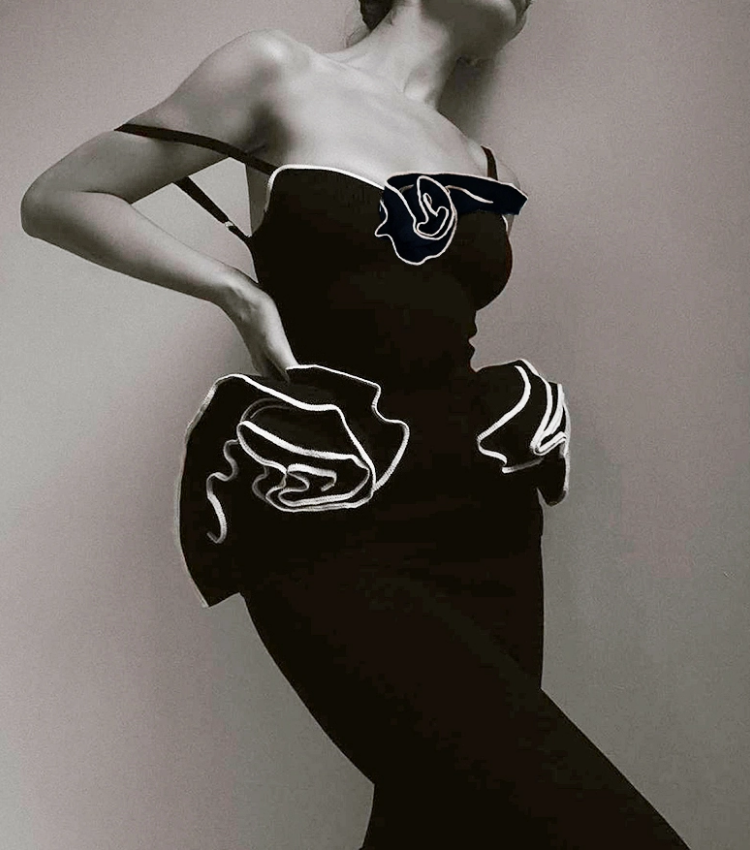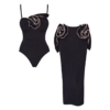 This black one piece is stunning! The 3D flowers add such a luxurious touch. I wore it at...